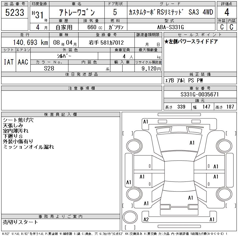 Все аукционы DAIHATSU ATRAI WAGON