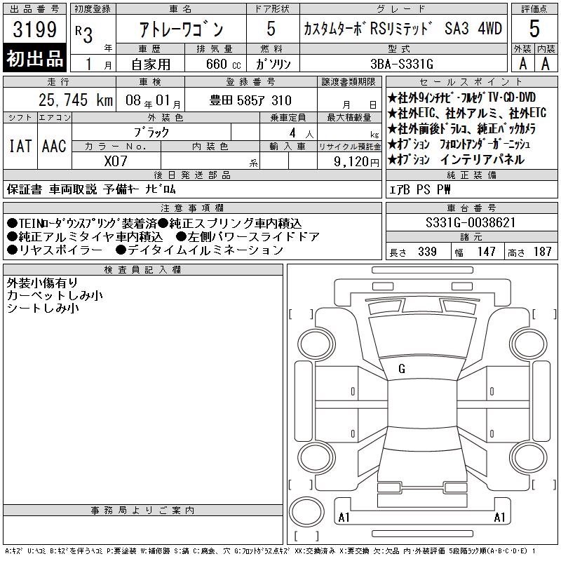DAIHATSU ATRAI WAGON CUSTOM TURBO RS LIMITED 4WD - лот 3199