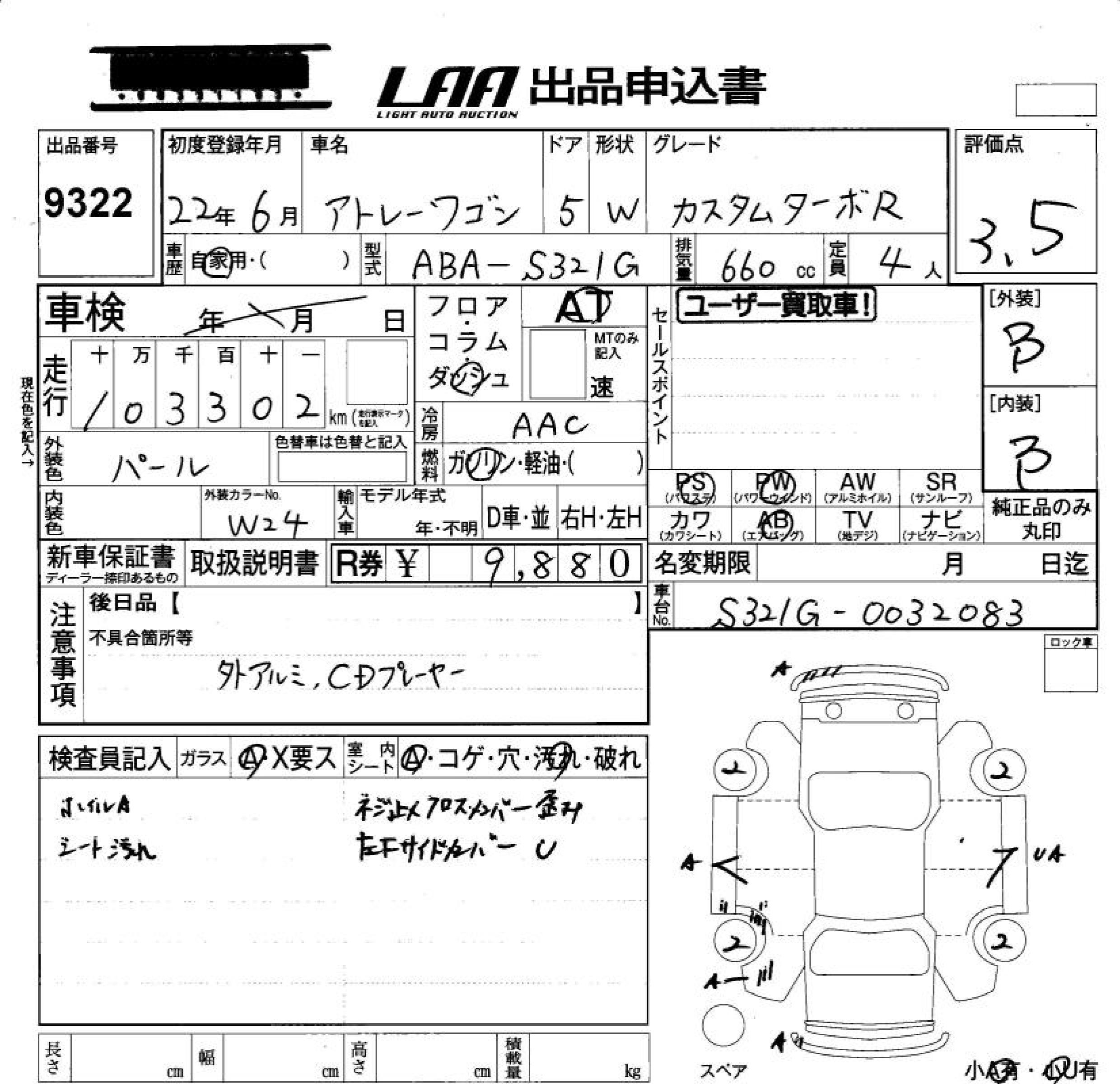 DAIHATSU ATRAI WAGON CUSTOM TURBO R - лот 9322