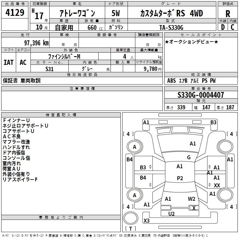 DAIHATSU ATRAI WAGON CUSTOM TURBO RS 4WD - лот 4129