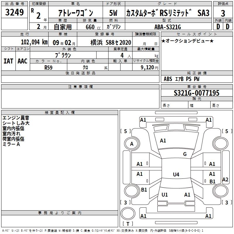 DAIHATSU ATRAI WAGON CUSTOM TURBO RS LIMITED SA3 - лот 3249