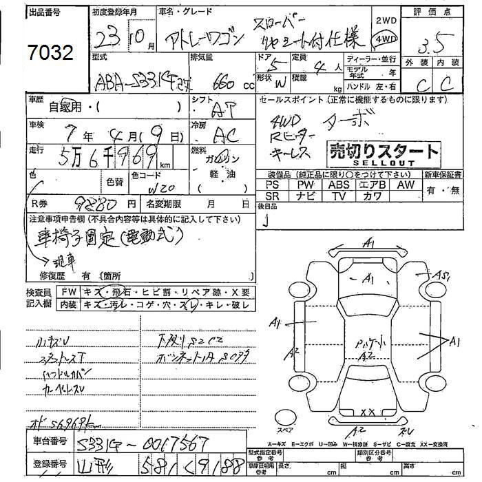 DAIHATSU ATRAI 4WD SLOPER REAR SEAT EXIST USE - лот 7032