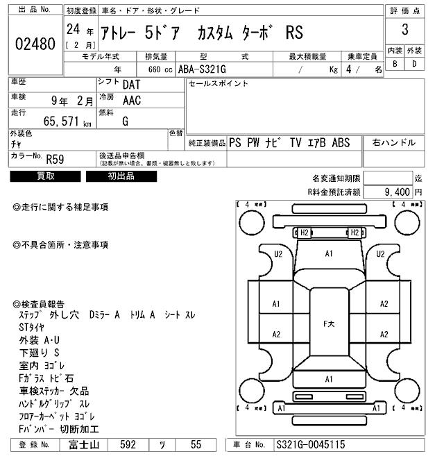 DAIHATSU ATRAI CUSTOM TURBO RS - лот 2480