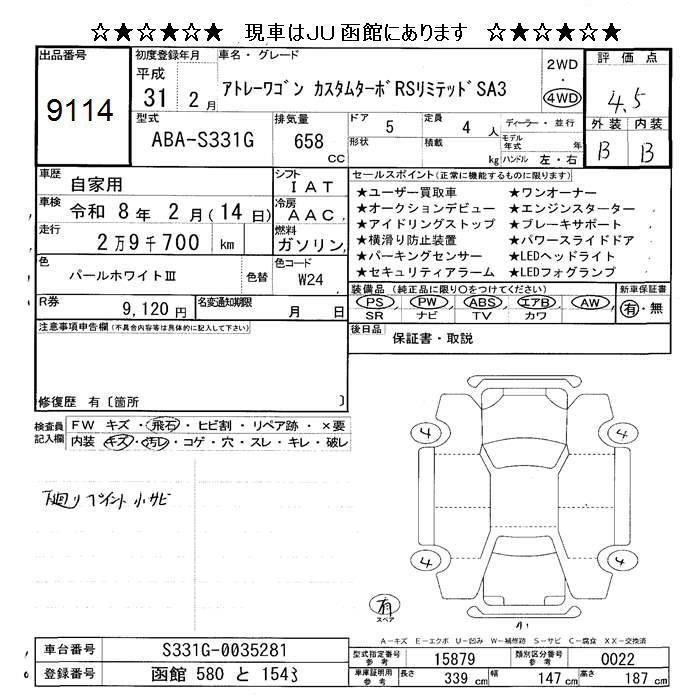 DAIHATSU ATRAI 4WD CUSTOM TURBO RS LTD SA III - лот 9114