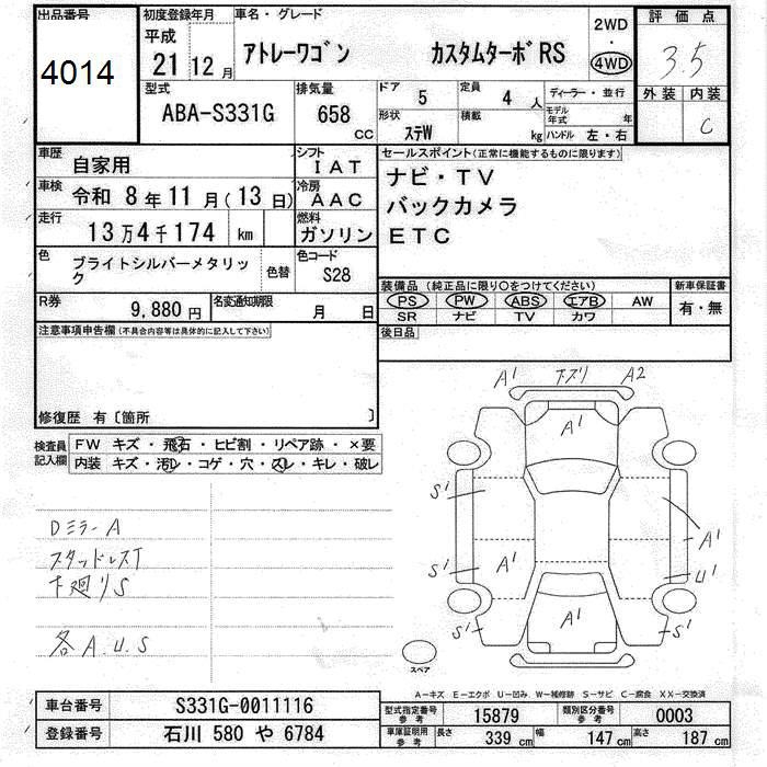 DAIHATSU ATRAI 4WD CUSTOM TURBO RS - лот 4014