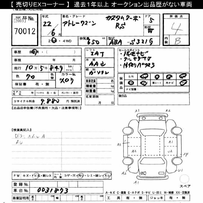 DAIHATSU ATRAI CUSTOM TURBO RS - лот 70012