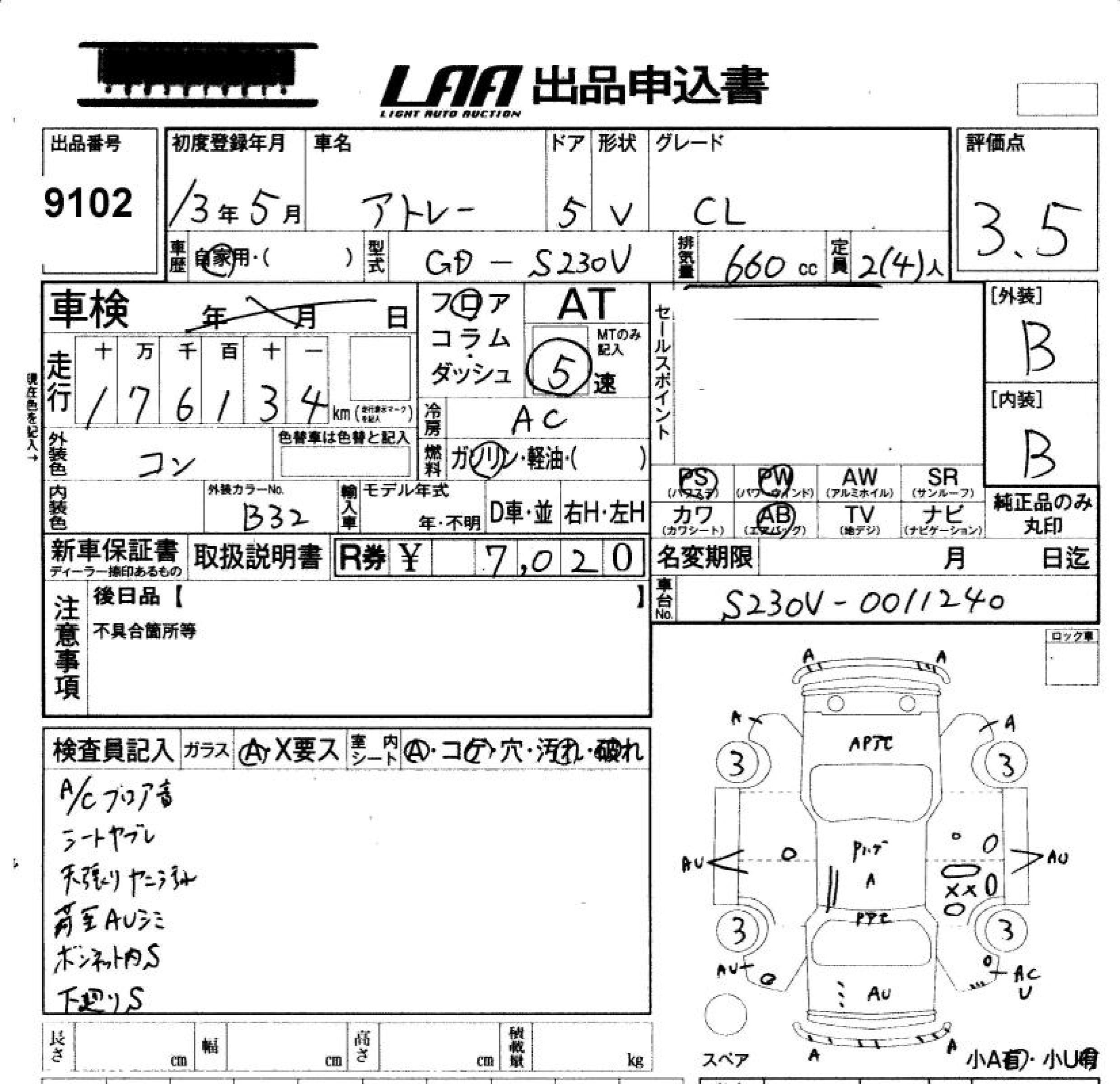 DAIHATSU ATRAI CL - лот 9102