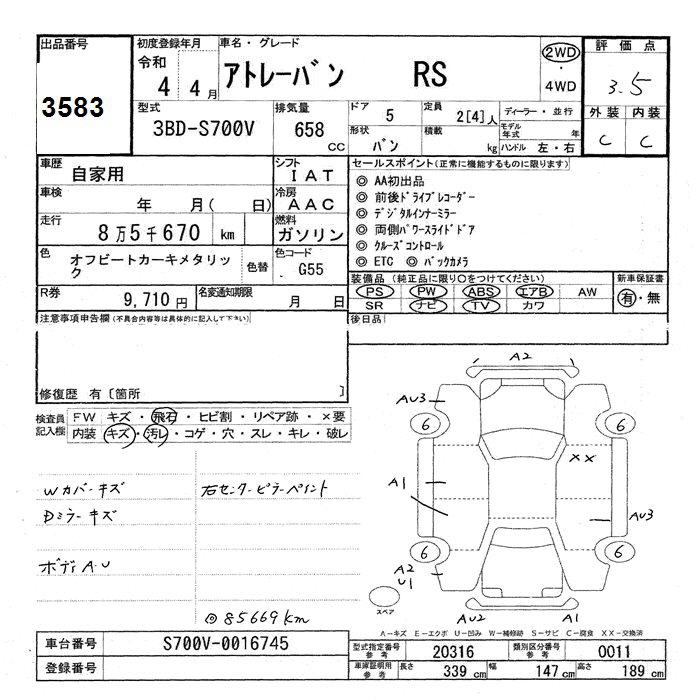 Все аукционы DAIHATSU ATRAI VAN