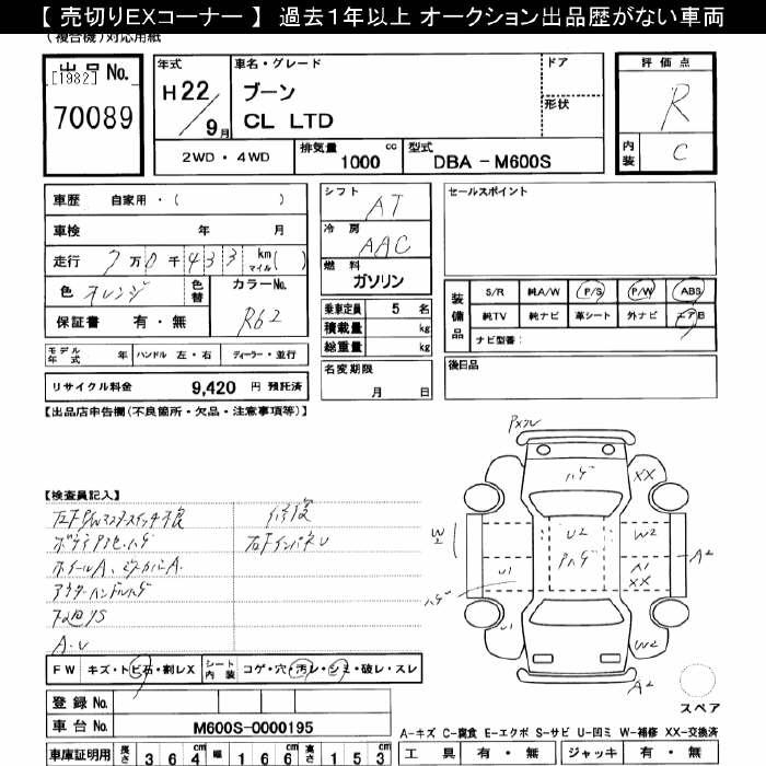 DAIHATSU BOON CL LTD - лот 70089