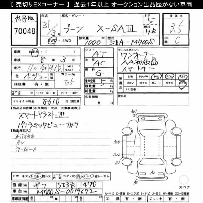 DAIHATSU BOON X SA3 - лот 70048