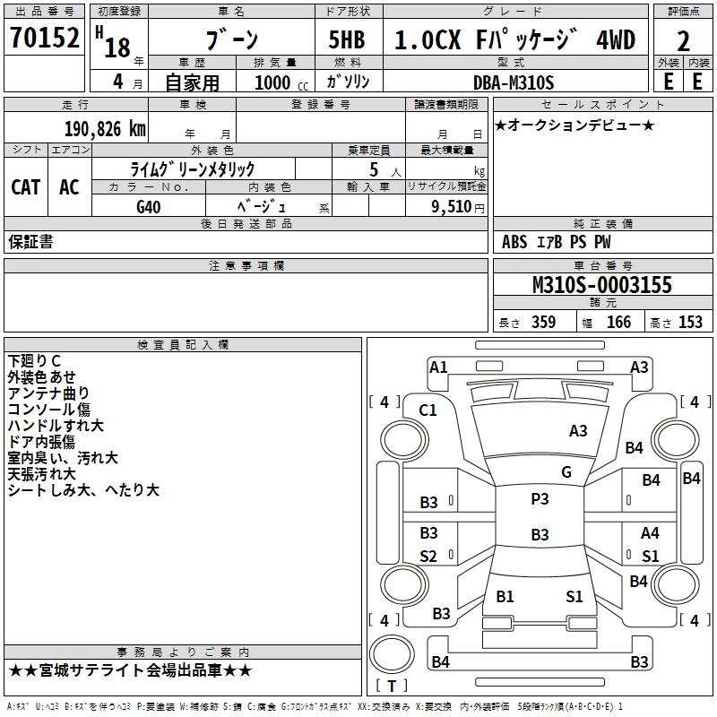DAIHATSU BOON 1.0CX F PACKAGE 4WD - лот 70152