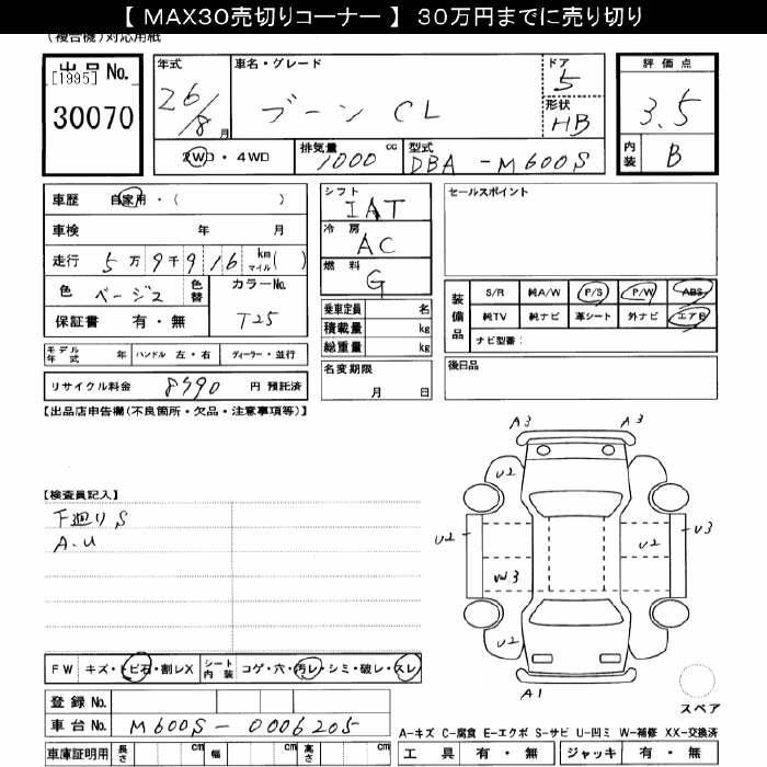DAIHATSU BOON CL - лот 30070