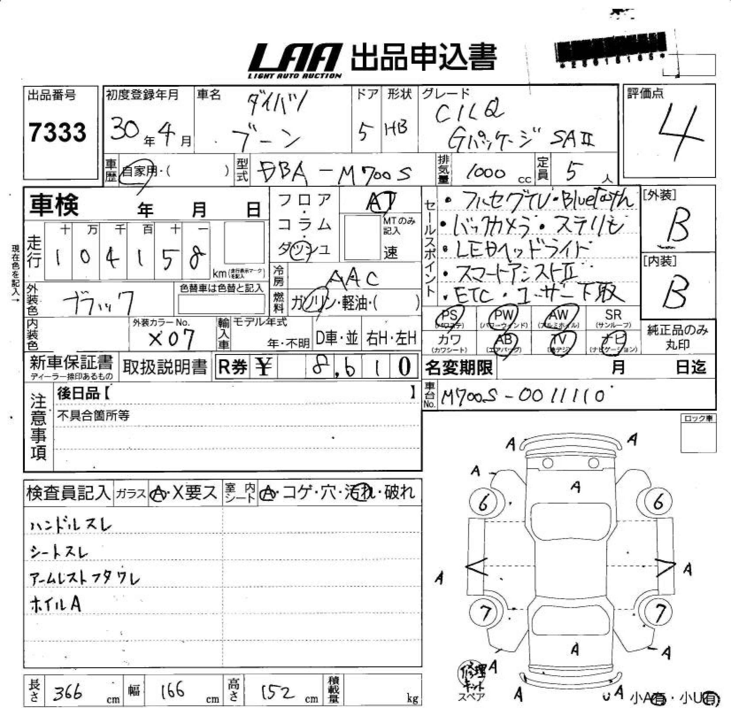 DAIHATSU BOON SILK G PACKAGE SA. - лот 7333