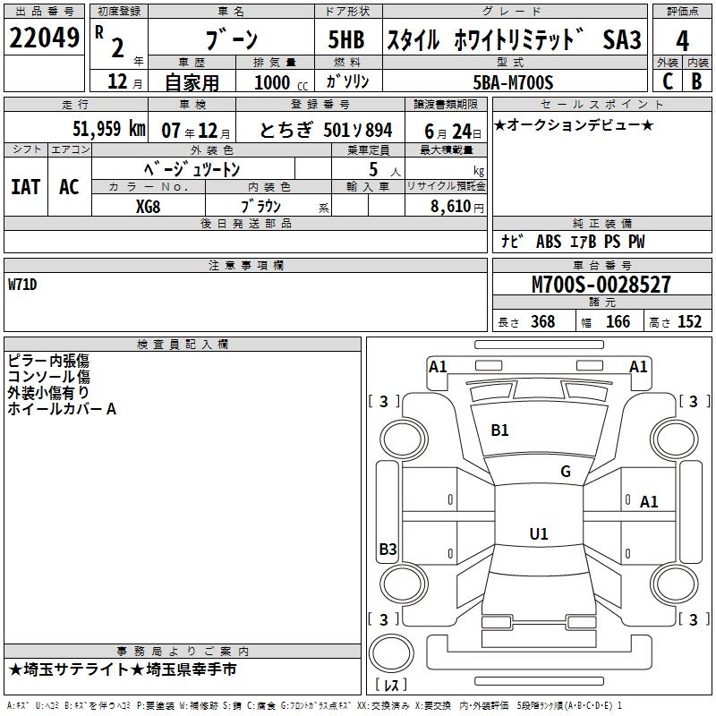 DAIHATSU BOON STYLE WHITE LIMITED SA3 - лот 22049