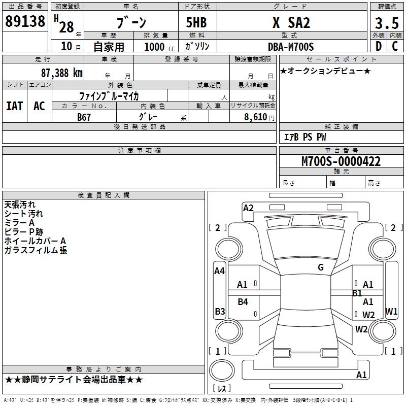 DAIHATSU BOON X SA2 - лот 89138