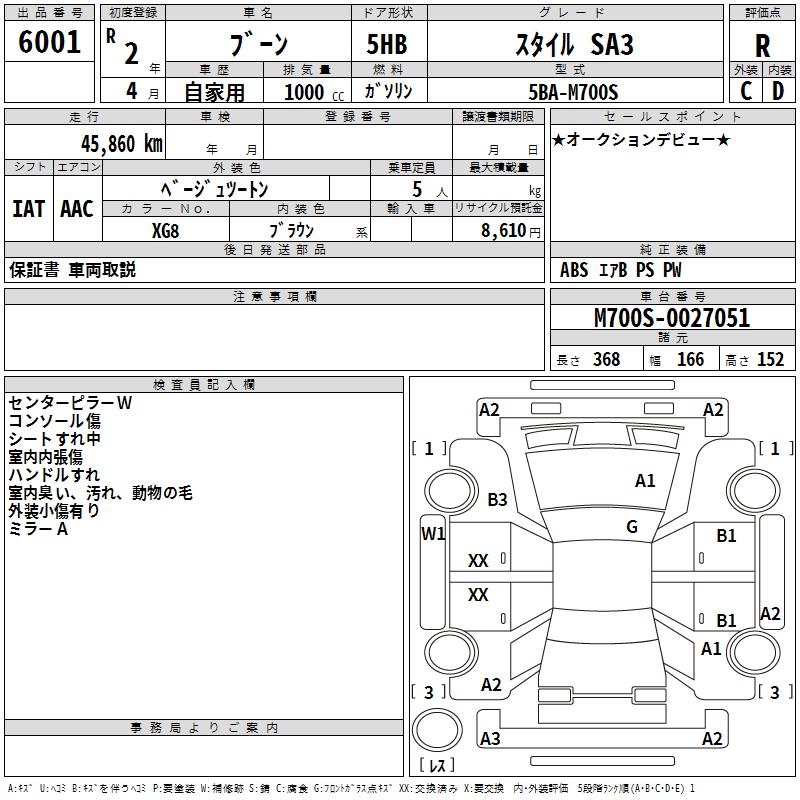 DAIHATSU BOON STYLE SA3 - лот 6001