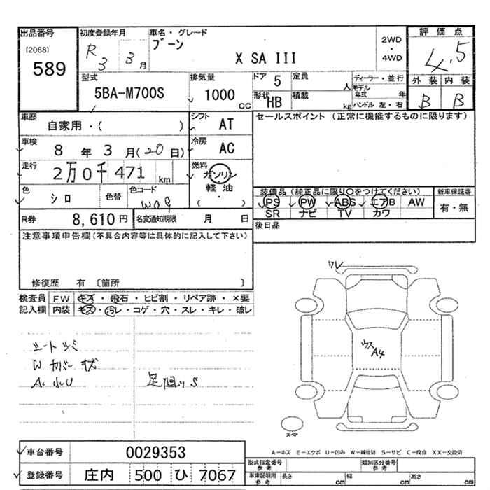DAIHATSU BOON X SA III - лот 589