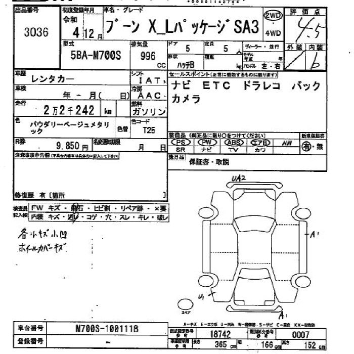 DAIHATSU BOON X L-PG SA3 - лот 3036