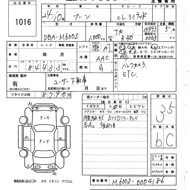 DAIHATSU BOON 1.0CL LIMITED - лот 1016