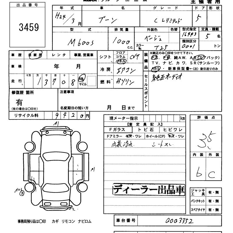 DAIHATSU BOON - лот 3459