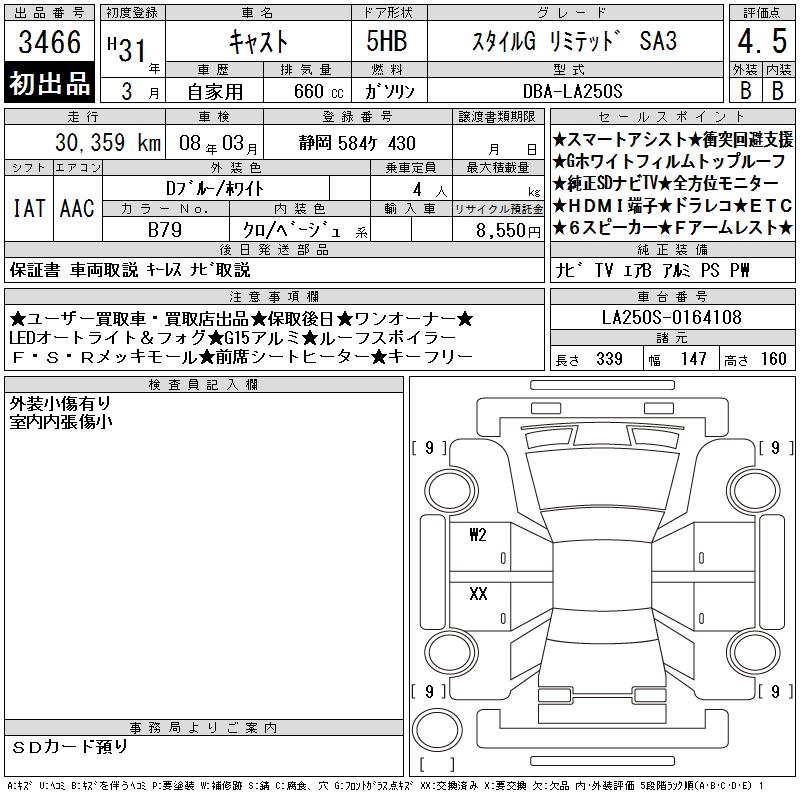 DAIHATSU CAST STYLE G LIMITED SA3 - лот 3466