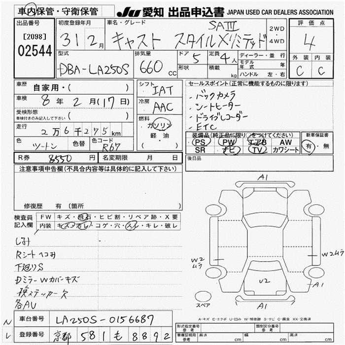 DAIHATSU CAST STYLE X LIMITED SA3 - лот 2544