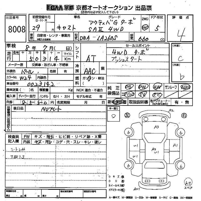 DAIHATSU CAST ACTY BAG TURBO SA. 4WD - лот 8008