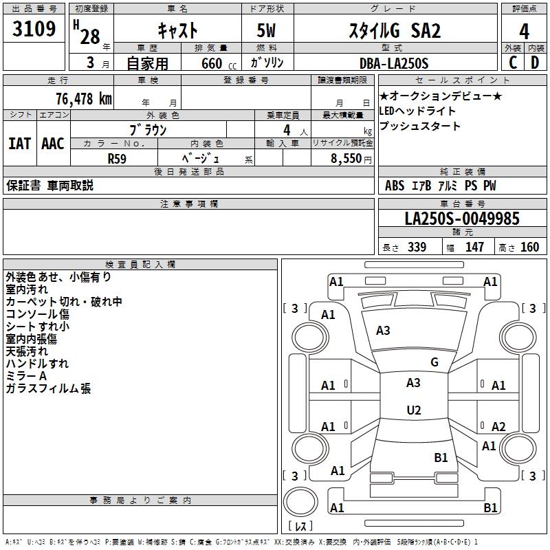 DAIHATSU CAST STYLE G SA2 - лот 3109