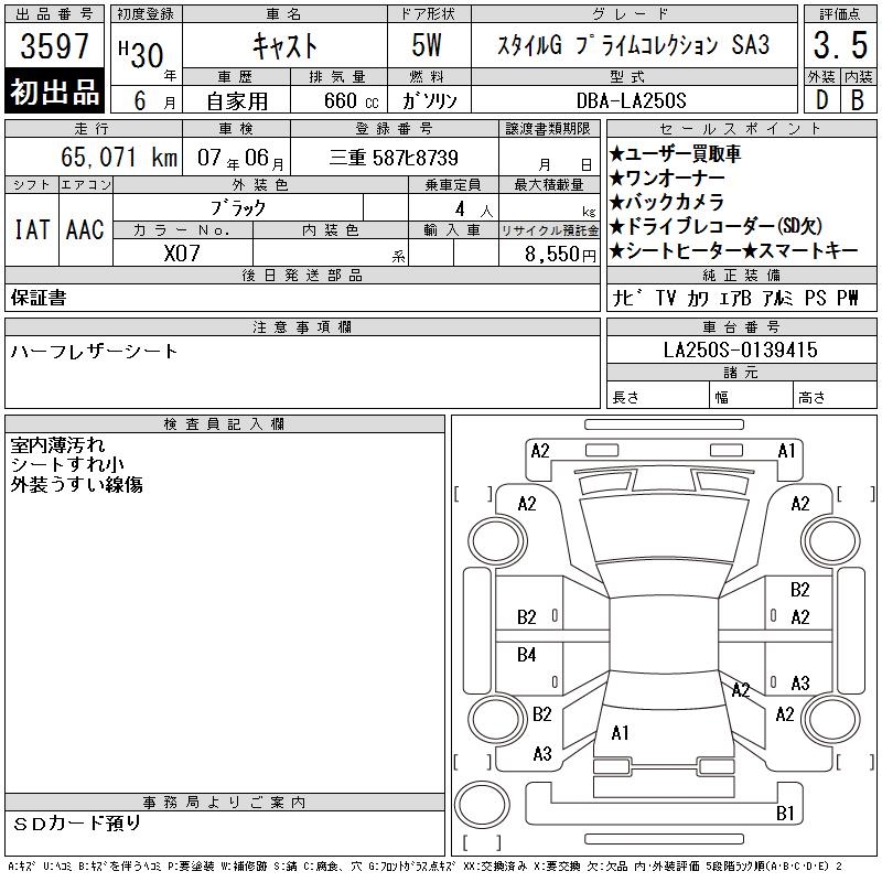 DAIHATSU CAST STYLE G PRIME COLLECTION SA3 - лот 3597