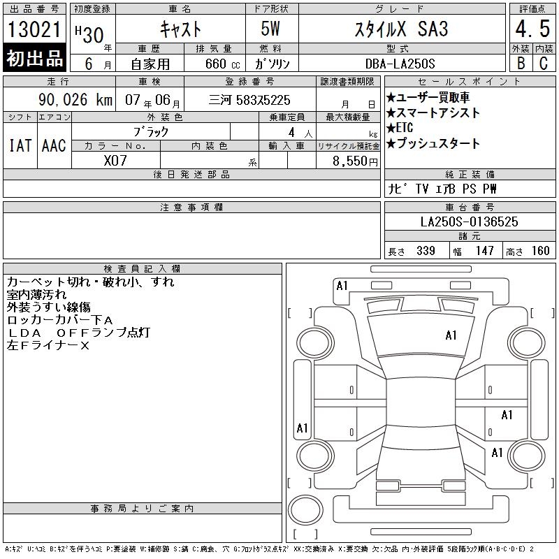 DAIHATSU CAST STYLE X SA3 - лот 13021