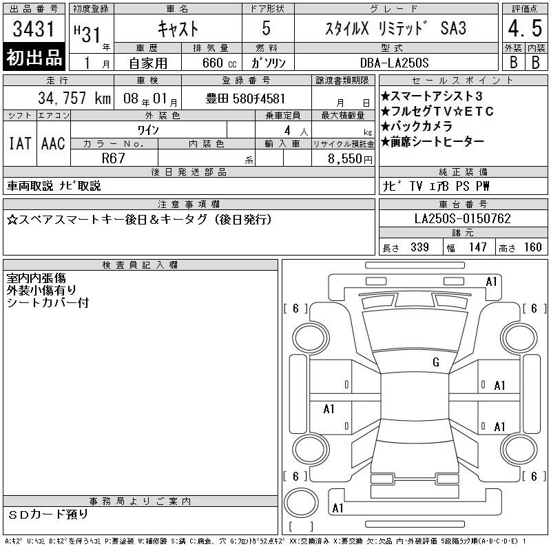 DAIHATSU CAST STYLE X LIMITED SA3 - лот 3431