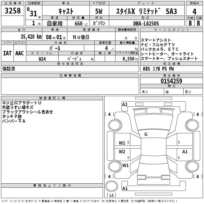 DAIHATSU CAST STYLE X LIMITED SA3 - лот 3258