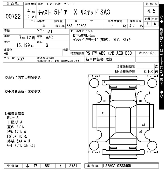 DAIHATSU CAST X LIMITED SA3 - лот 722