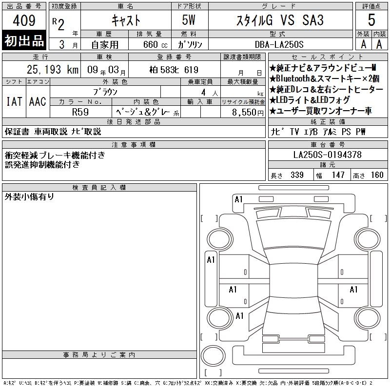DAIHATSU CAST STYLE G VS SA3 - лот 409