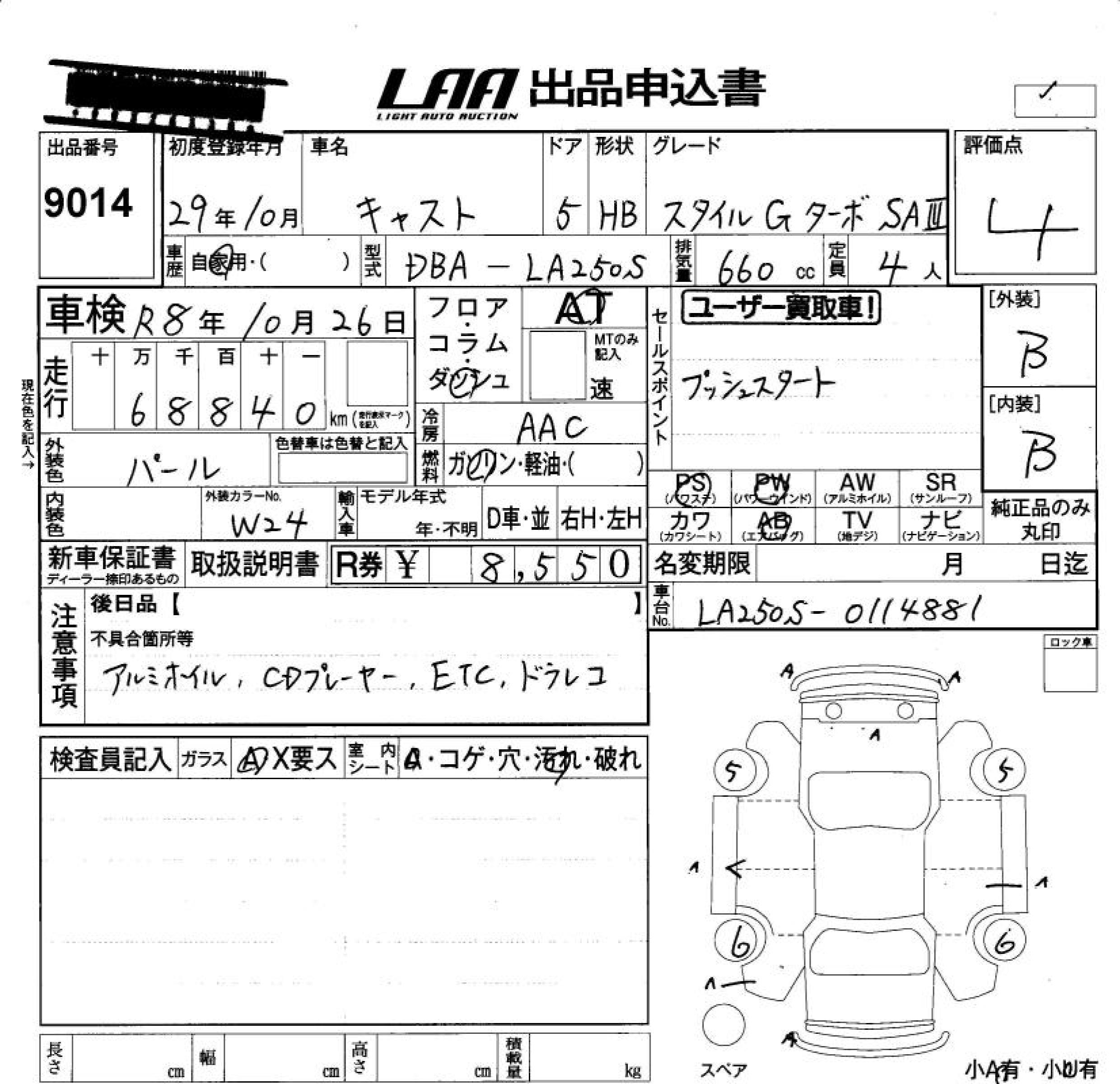 DAIHATSU CAST STYLE G TURBO SA. - лот 9014