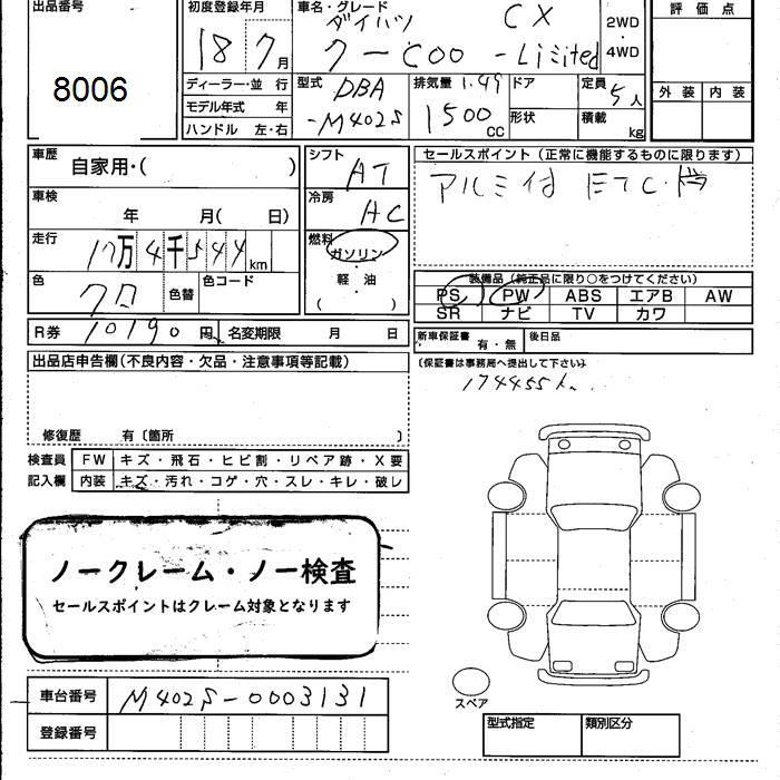 DAIHATSU COO CX LTD - лот 8006
