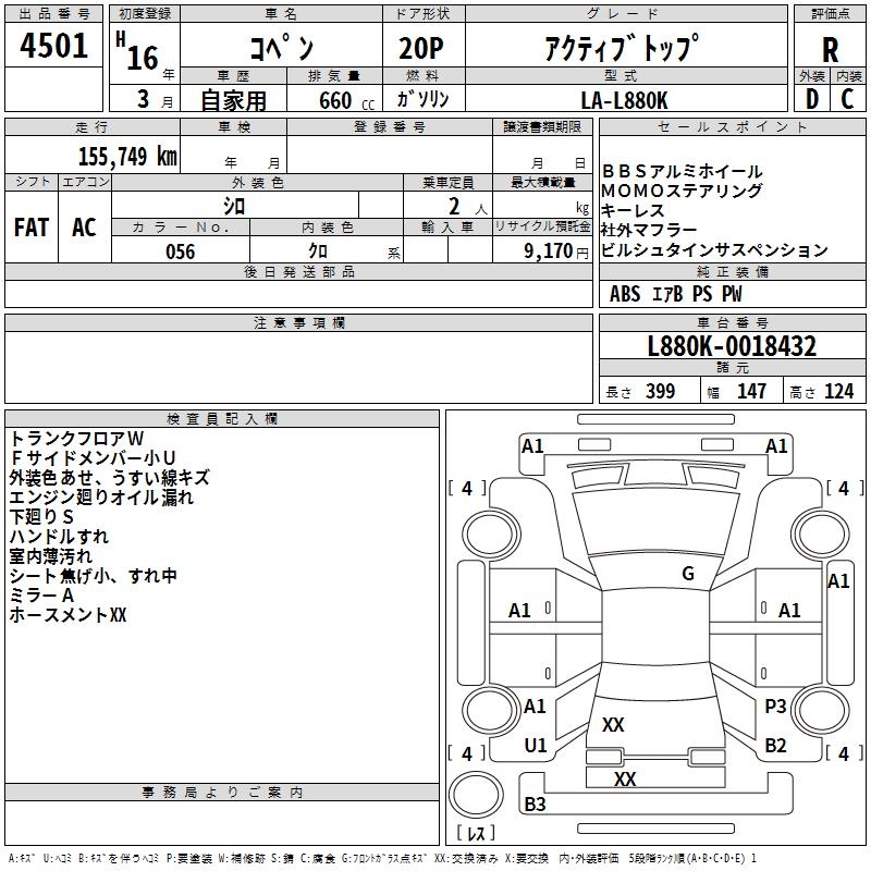DAIHATSU COPEN ACTIVE TOP - лот 4501