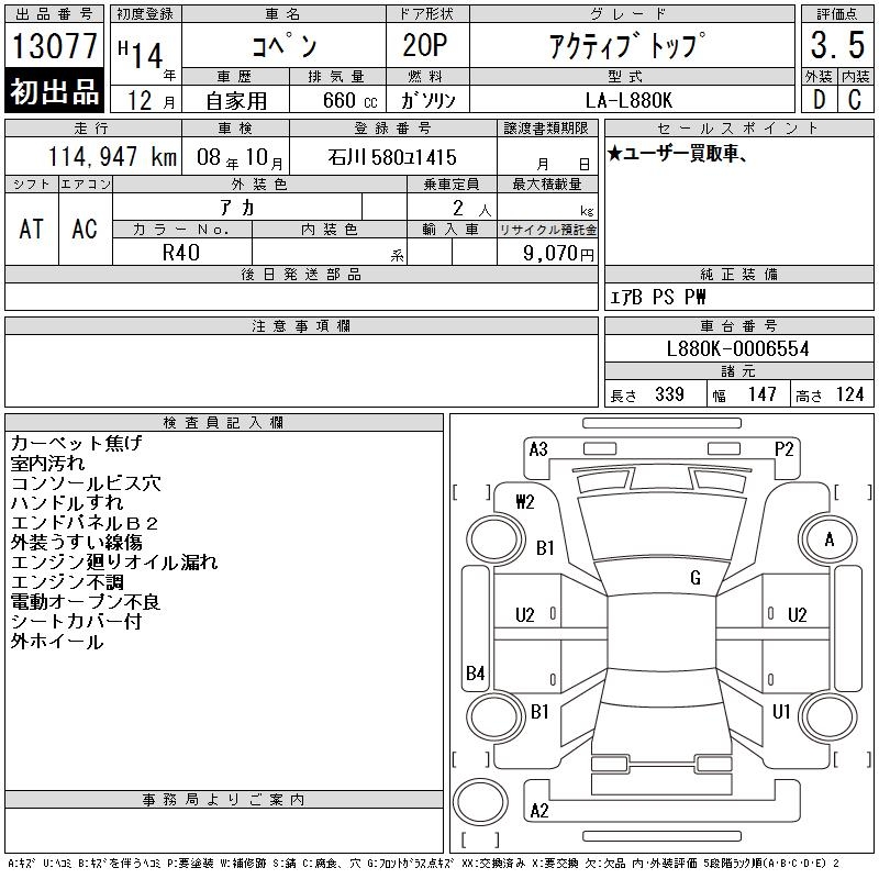 DAIHATSU COPEN ACTIVE TOP - лот 13077