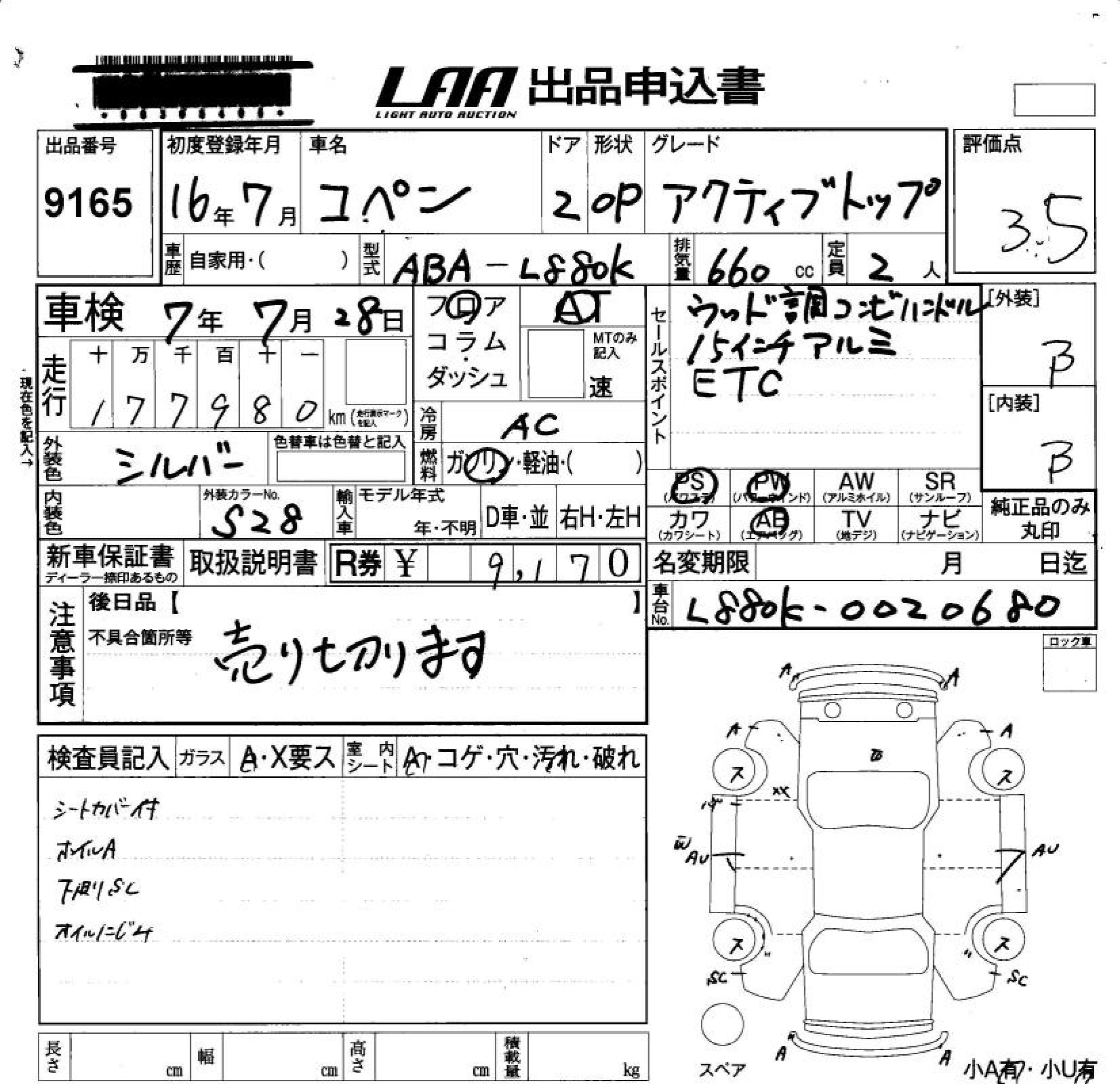 DAIHATSU COPEN ACTIVE TOP - лот 9165