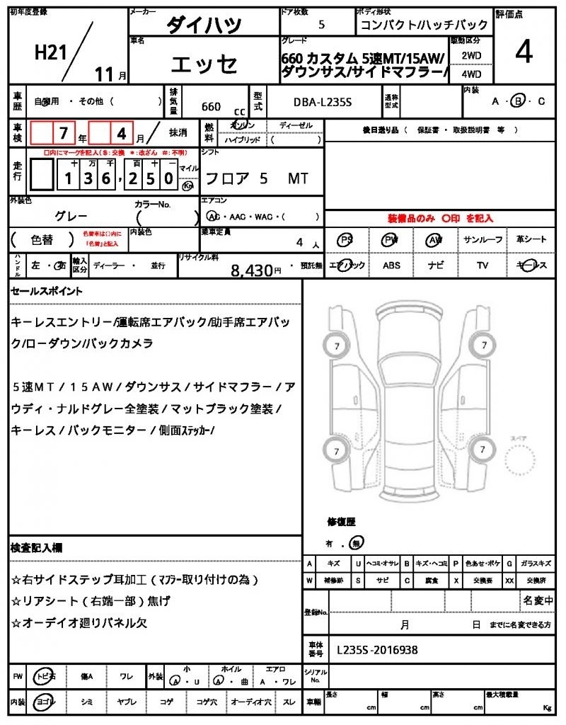 Все аукционы DAIHATSU ESSE