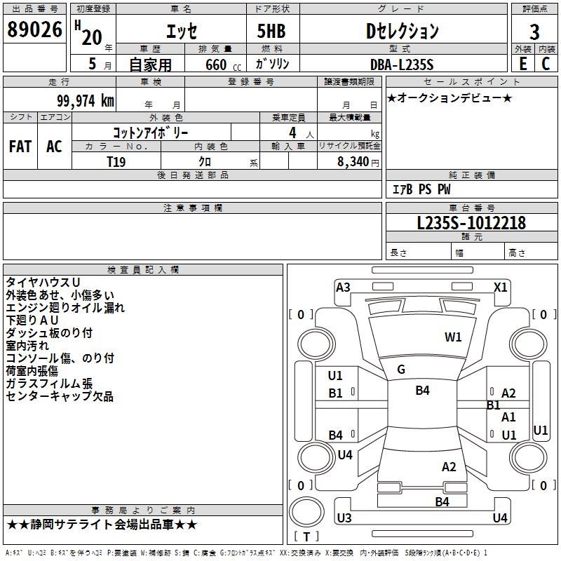 DAIHATSU ESSE D SELECTION - лот 89026