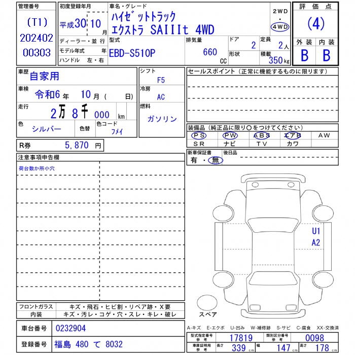 DAIHATSU HIJET TRUCK - лот 7949