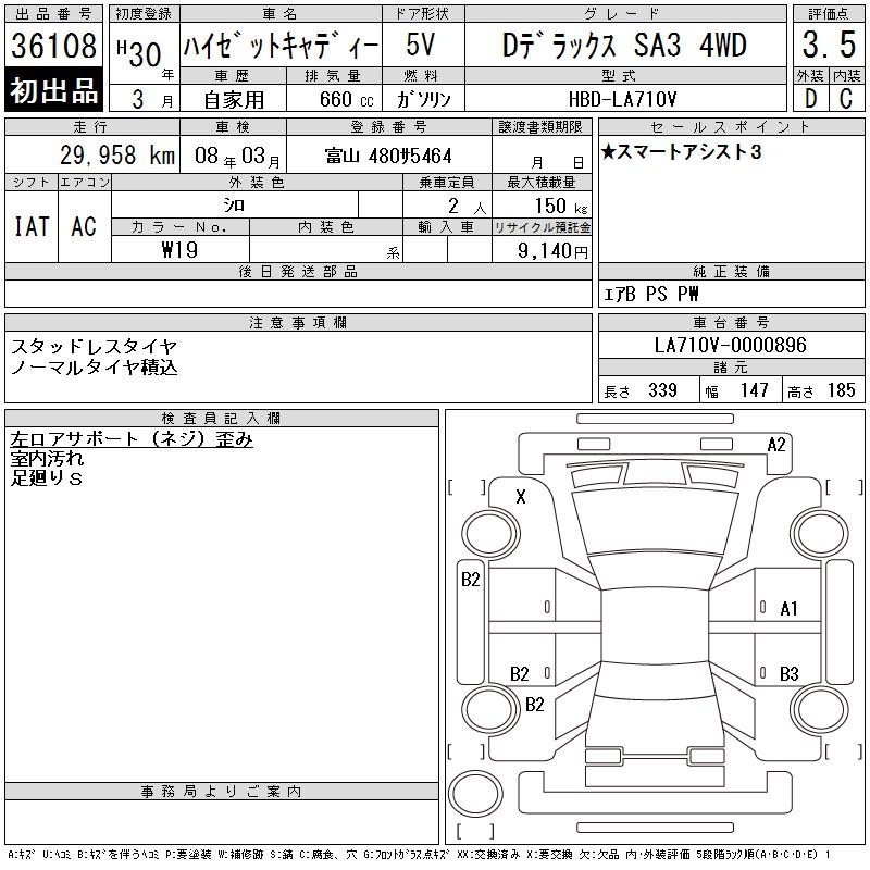 DAIHATSU HIJET СADDY D DELUXE SA3 4WD - лот 36108