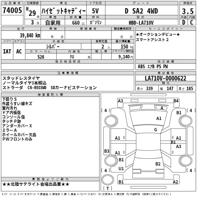 DAIHATSU HIJET СADDY D SA2 4WD - лот 74005