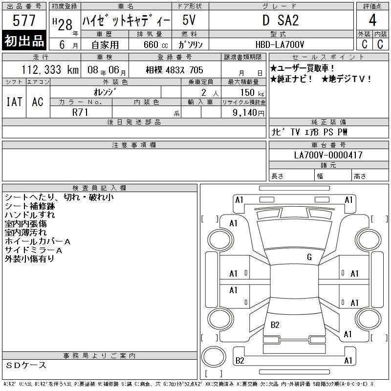 DAIHATSU HIJET СADDY D SA2 - лот 577