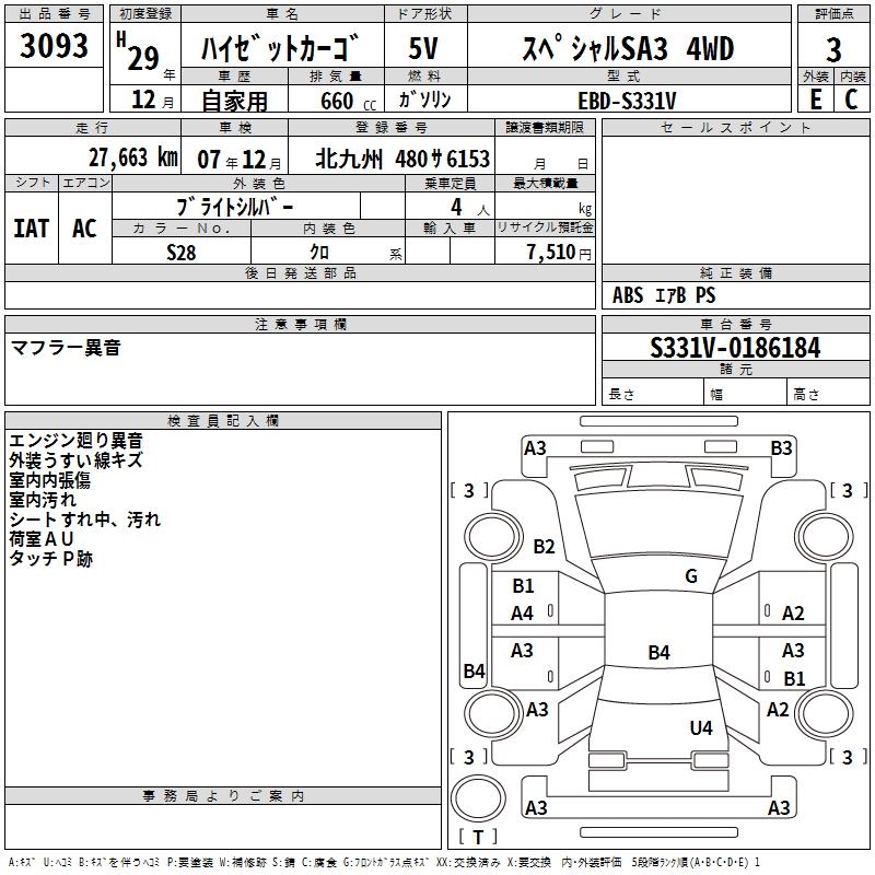 DAIHATSU HIJET CARGO SPECIAL SA3 4WD - лот 3093