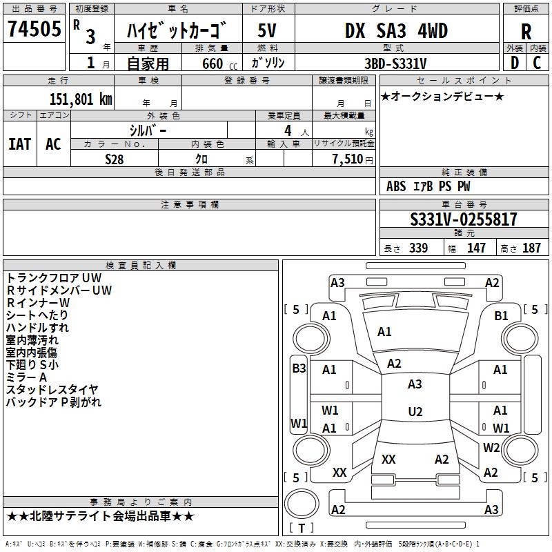 DAIHATSU HIJET CARGO DX SA3 4WD - лот 74505