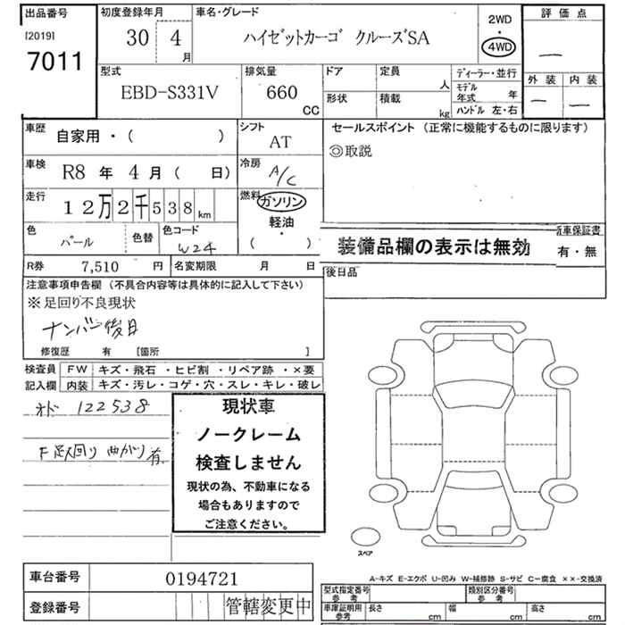 DAIHATSU HIJET CARGO 4WD CRUISE SA - лот 7011