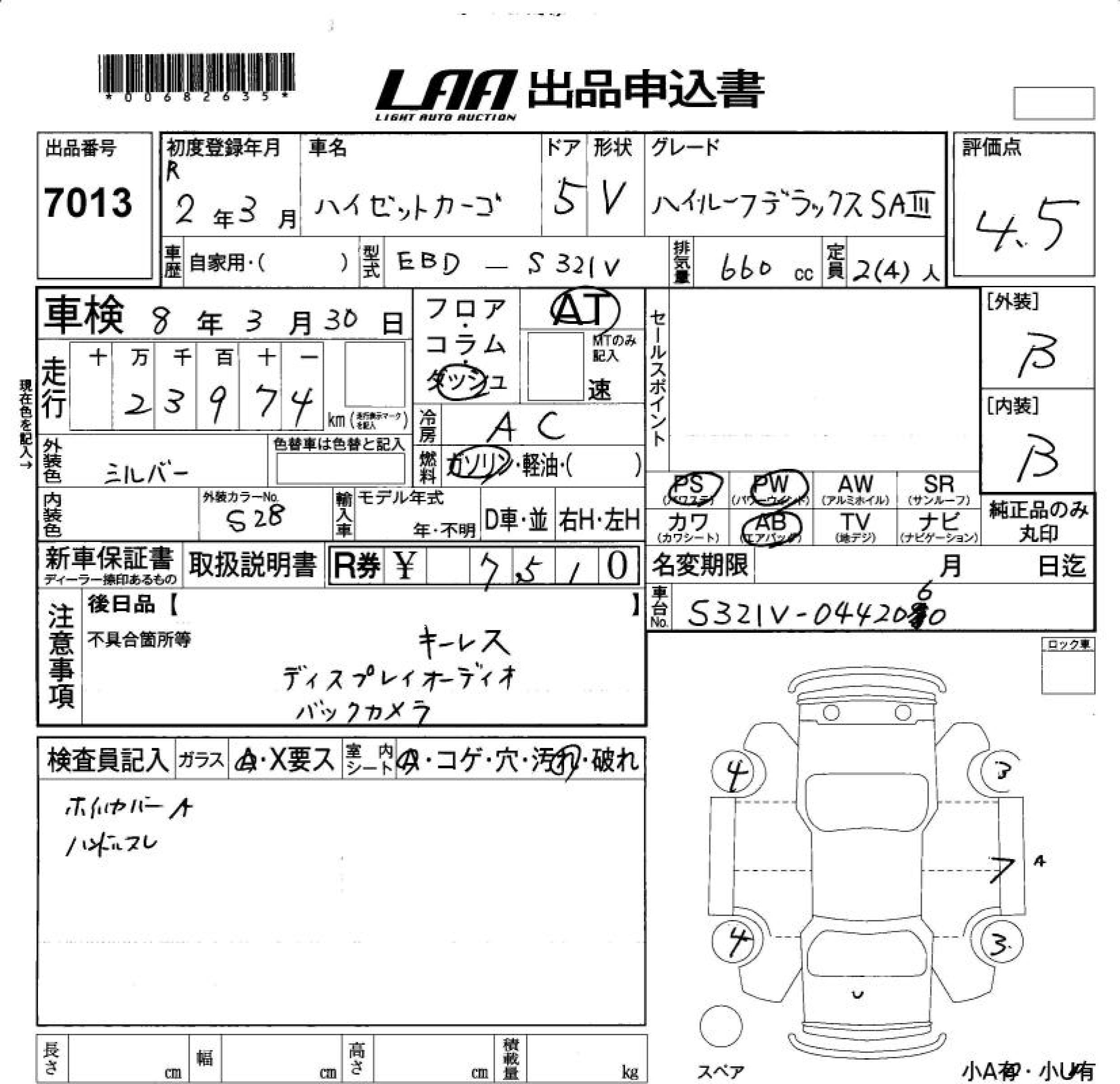 DAIHATSU HIJET CARGO HIGH ROOF DELUXE SA. - лот 7013