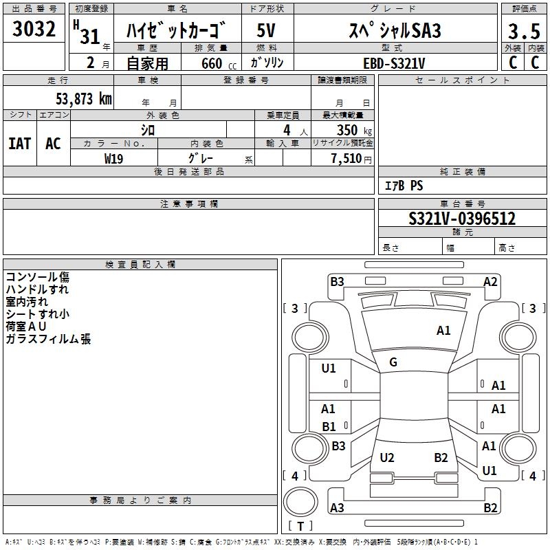 DAIHATSU HIJET CARGO SPECIAL SA3 - лот 3032